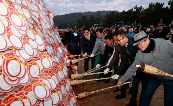 이번 해맞이 행사는 오전 6시 30분부터 새해를 여는 타악 공연, 국악 공연, 성악 공연을 시작으로 새해 희망 나눔, 소망지 쓰기, 달집태우기 행사 등 다채로운 프로그램이 펼쳐졌다.