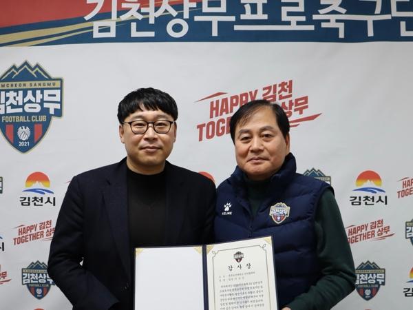 김천상무는 감사장을 전달하며, 2024시즌도 지속적인 지원을 약속했다.