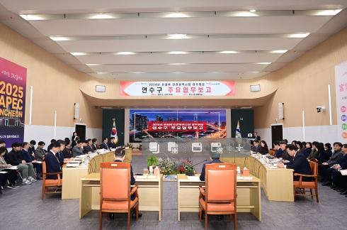 연수구는 지난 1일 인천시 군?구 연두방문 일정으로 연수구를 방문한 유정복 인천광역시장과 간부 공무원들을 상대로 지역 현안사업 중심의 주요업무보고와 주민 소통의 시간을 가졌다.