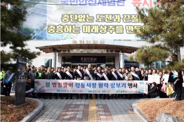 상주시는 설 명절을 앞두고 경기침체로 어려움을 겪고 있는 전통시장 상인들의 사기 진작과 내수경기 활성화를 위해 2월 7일 11시 전통시장 장보기 행사를 진행했다.