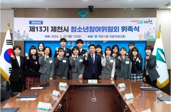 제천시는 지난 27일 제천시청 의림지실에서 ‘2024년 제13기 제천시 청소년참여위원회’ 위촉식을 개최했다.