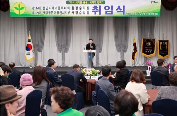 이상일 용인특례시장은 지난 12일 시청 컨벤션홀에서 열린 용인시새마을회 제16대 황정순 부녀회장과 제12대 서경순 문고회장 취임식에 참여해 관계자들을 격려했다.