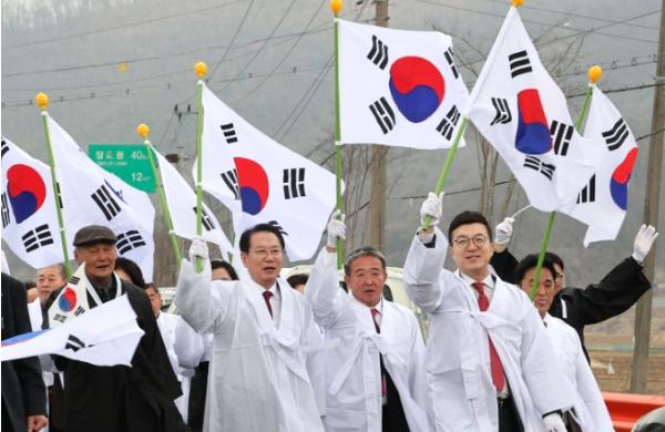 충북 괴산군 소수면에서 105년 전 대한독립만세를 외치며 일제에 항거했던 그날의 함성이 재현됐다.