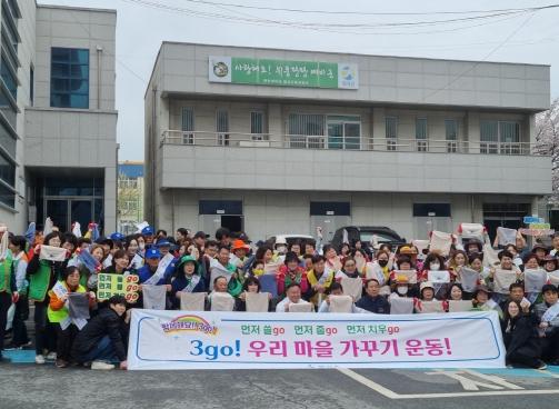 ‘3go! 우리 마을 가꾸기 사업’은 ‘먼저 쓸go, 먼저 줍go, 먼저 치우go’라는 슬로건 아래, 주민 스스로 마을을 가꾸자는 취지의 주민 주도형 정화 활동이다.