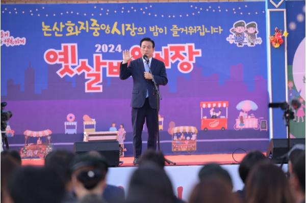 논산시가 지난 3일 화지중앙시장 제2주차장에서‘2024 옛살비 야시장’의 시작을 알렸다고 밝혔다.