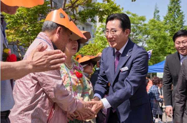 박경귀 아산시장이 지난 2일 탕정한마음종합사회복지관 야외마당에서 열린 어버이날 기념행사에 참석했다.
