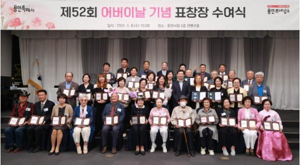 용인특례시는 지난 8일 ‘제52회 어버이날’을 맞아 시청 컨벤션홀에서 효행자 18명과 장한 어버이 25명에게 표창장을 수여했다.