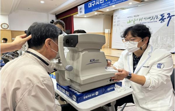 대구 동구청은 지난 12일, 대구달구벌로타리클럽과 대구안경사회와 함께 어르신 100여 명을 모시고 맞춤 안경 지원을 위한 검안 및 안경테 맞춤 행사를 가졌다.