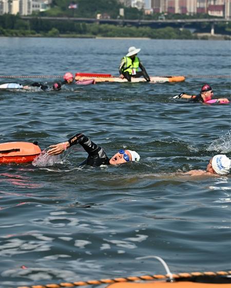 오세훈 서울시장이 지난 1일 뚝섬한강공원에서 열린 ?제1회 쉬엄쉬엄 한강 3종 축제?에 참여해 시민들에게 마음 편히 수영할 수 있는 한강의 깨끗한 수질을 알리는 데 앞장선 가운데, 2일에는 ‘수영’ 상급자 코스인 잠실수중보 남단에서 북단까지 한강 1km를 시민들과 함께 종단했다.