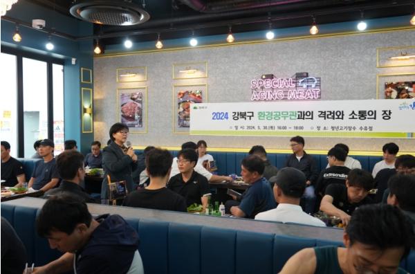 또한 구는 환경공무관들을 격려하고 소통하기 위해 지난달 30일 간담회를 열었다. 이날 환경공무관 68명이 참석했으며 이순희 강북구청장은 직접 환경공무관들의 건의사항을 경청했다. 구는 환경공무관들의 업무에 관한 의견과 건의사항 등을 적극적으로 검토하여 향후 클린강북 사업에 반영할 방침이다.