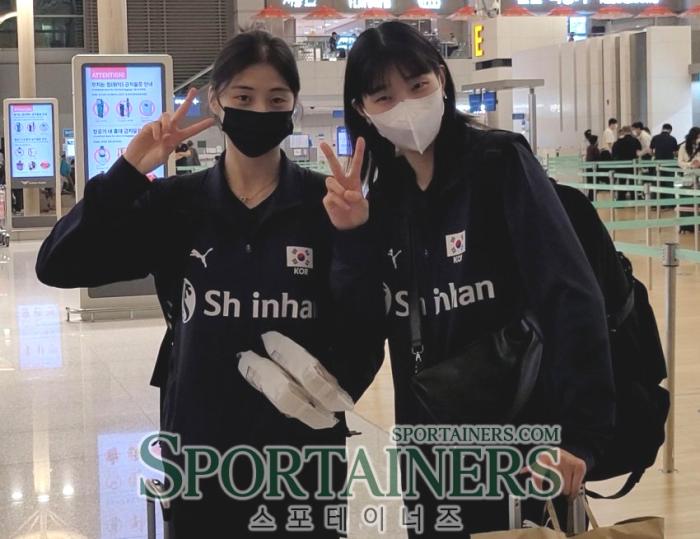 | 박혜민(좌), 이주아(우)가 팬들의 요청에 포즈를 취하고 있다. [인천=스포테이너즈] 대한민국 여자배구 국가대표팀이 '2022 세계여자배구선수권대회'와 전지훈련 참가를 위해 11일 밤 인천국제공항을 통해 출국했다. 감독 : 세자르 세터 : 김하경 염혜선 리베로 : 김연견 한다혜 미들블로커 : 이다현 이주아 한수지 아포짓 : 하혜진 아웃사이드히터 : 박정아 박혜민 유서연 이선우 표승주 황민경 |