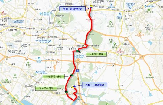 이번에 시범운행에 들어가는 노선은 송내역(남부) 부터 논현동(N50), 청라국제도시역 부터 청라5단지(N81)이다.