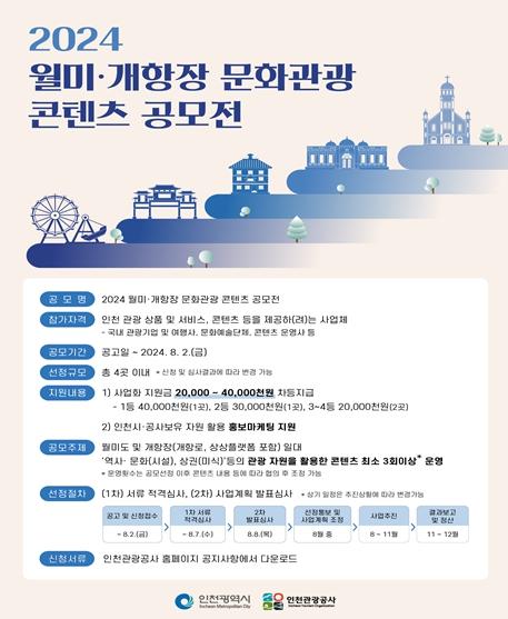 인천광역시와 인천관광공사는 8월 2일까지‘월미·개항장 문화관광 콘텐츠 공모전’을 개최한다.