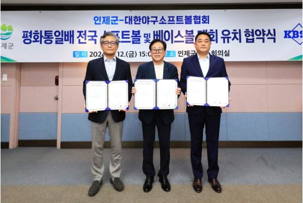 이번 협약식에는 최상기 인제군수와 양해영 대한야구소프트볼협회 부회장, 김호탑 인제군야구소프트볼 협회장이 참석해 스포츠 대회 개최와 전지훈련 실시를 통한 지역경제 활성화에 상호 협력하기로 합의했다.