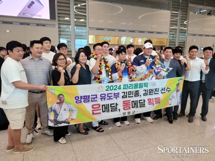 [포토] 양평군 유도부 김민종, 김원진 '금의환향'