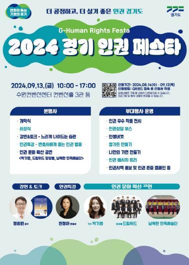 세계인권선언 76주년 및 경기도 인권행정도입 11주년을 기념하기 위한 이번 행사는 명사와 함께하는 인권강연 및 토크, 문화예술공연, 체험, 전시 등 다채로운 프로그램이 마련됐다.
