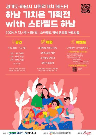 경기도가 오는 9월 12일부터 10월 13일까지 도내 스타필드 4개 지점에서 ‘2024 경기도 사회적가치 페스타’를 개최한다.