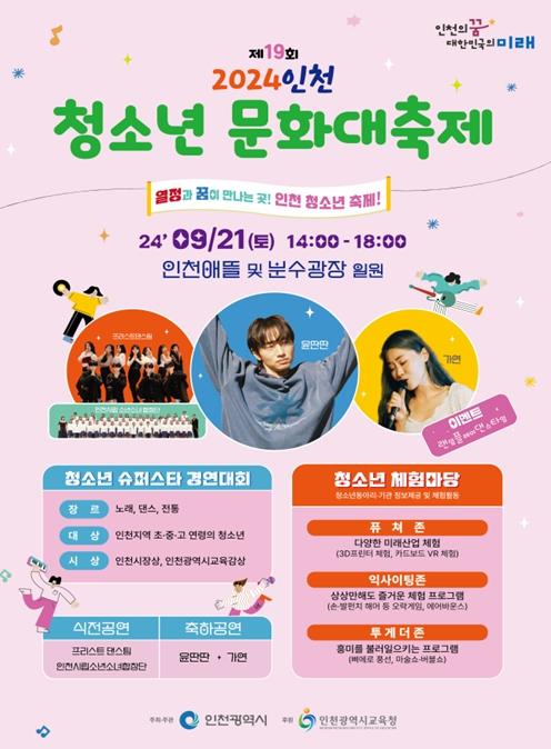 인천광역시는 오는 9월 21일 인천애뜰광장에서 ‘인천 청소년문화대축제'를 개최한다고 밝혔다.