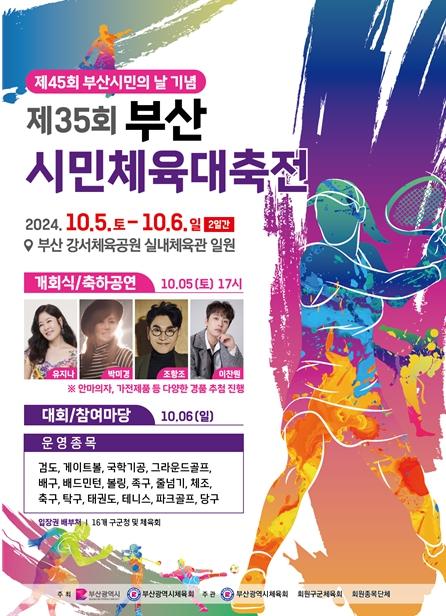 부산시는 오는 5일부터 6일 이틀간 강서체육실내체육관 일원에서 부산 생활체육 동호인들의 최대 축제인 '제35회 부산시민체육대축전'을 개최한다고 밝혔다.