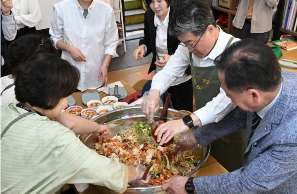 서울 중구가 지난 8일 기대해 회원 20여 명과 담소정에서 직접 재배한 친환경 채소로 비빔밥을 만들어 함께 나누는 ‘비빔밥 데이(day)’를 개최했다.