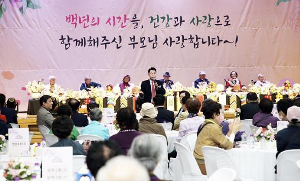 이날 축제에는 100세 이상 어르신 7명을 포함해 90세 이상 어르신 150여 명과 가족 등 200여 명이 참석했다.