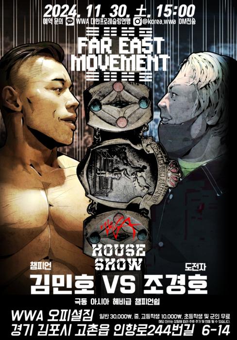 대한프로레슬링연맹(WWA)은 공식 SNS를 통해 오는 11월 30일 김포시 고촌읍에 위치한 WWA 오피셜 짐에서 'FAR EAST MOVEMENT 2' 하우스쇼가 열린다고 발표했다.