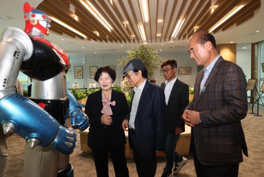 로보트태권V(브이) 김청기 감독 기획 전시 ‘엉뚱산수화展’ 및 작가 사인회에서는 80년대 로보트태권브이 LP판, 우뢰매 CD를 소장한 팬 등 100여명의 팬들이 참여하여 김청기 감독이 직접 그린 ‘상주시립도서관×로보트태권브이’ 콜라보 엽서에 사인을 받았다. 이번 전시회는 상주시립도서관 3층 상상라운지에서 10월 27일까지 진행된다.