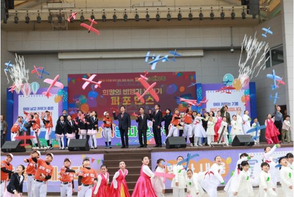 농촌형 저출생 극복 성과 발표에 이어 1부 행사를 통해 얻은 수익금 기부와 가족이 함께한 희망 비행기 날리기는 관람객들에게 감동을 선사했다.