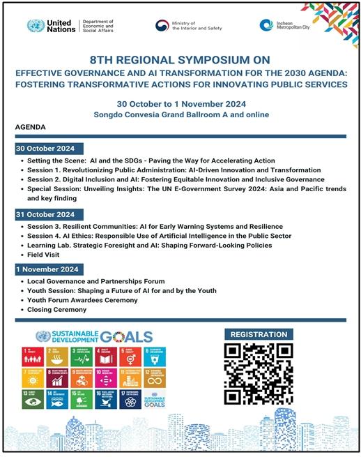 ‘인공지능(AI) 시대, 지속가능한 미래정부를 위한 글로벌 협력 논의’를 주제로 열리는 이번 심포지엄은, 유엔과 아시아·태평양 지역의 공공행정 전문가들이 유엔의 지속가능발전목표(Sustainable Development Goals) 이행 전략을 논의하기 위해 2017년부터 매년 개최되어 올해로 8회를 맞이했다.