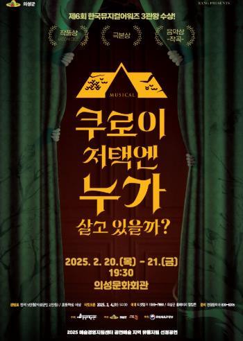 의성군은 지난 2022년 제6회 한국뮤지컬어워즈에서 작품상/극본상/음악상 3개 부문을 수상한 뮤지컬 '쿠로이 저택엔 누가 살고 있을까?'를 오는 2025년 2월 20일부터 21일까지 2일간, 저녁 7시 30분, 의성문화회관에서 개최한다고 밝혔다.