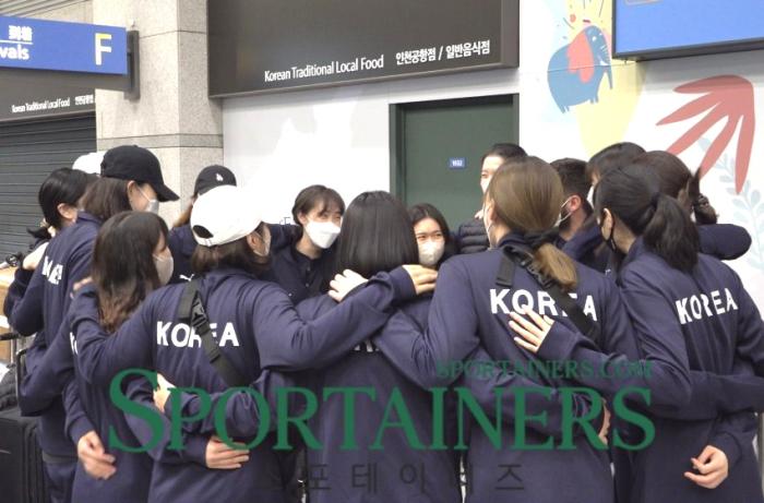 [인천=스포테이너즈] 대한민국 여자배구 대표팀 '세자르호'가 폴란드에서 열린 2022 국제배구연맹(FIVB) 세계선수권 대회를 마치고 인천국제공항 1터미널에 입국하고 있다.