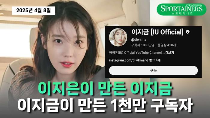 [스포테이너즈=고초록 기자] 가수 겸 배우 아이유(본명 이지은, 32)가 유튜브에서 1000만 구독자를 돌파하며 ‘다이아 버튼’ 유튜버 대열에 합류했다.