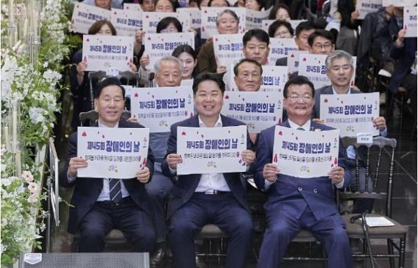 아산시가 매년 4월 20일로 지정된 장애인의 날을 기념해 지난 16일 아산터미널웨딩홀에서 ‘제45회 장애인의 날 기념식’을 가졌다.