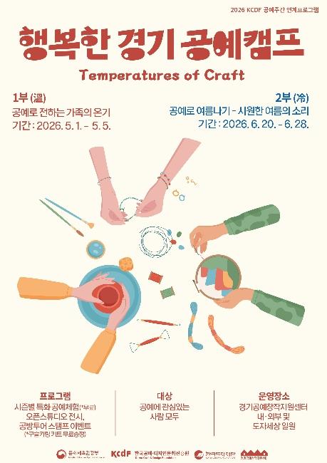 • 한국도자재단이 오는 5월 1일부터 경기공예창작지원센터(여주) 일원에서 체험·전시·이벤트를 결합한 참여형 프로그램 ‘2026 행복한 경기 공예 캠프’를 개최한다.