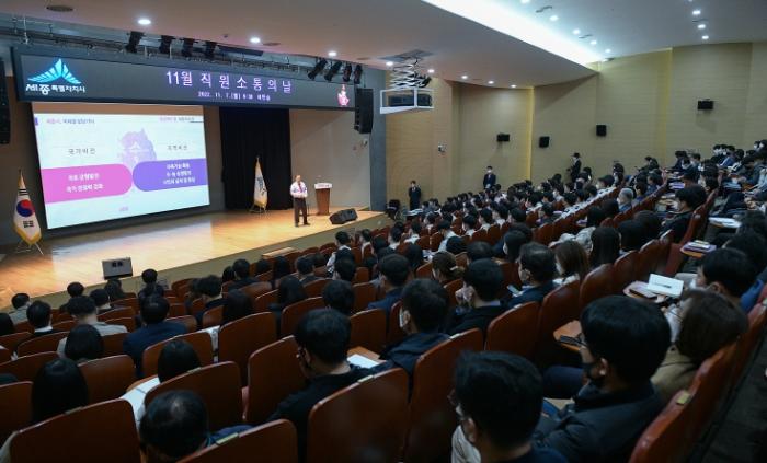 최 시장은 지난 7일 시청 여민실에서 열린 ‘11월 직원 소통의 날’을 통해 “직원 모두 서로가 칭찬하고 아껴주는 조직이 되어야 한다”라며 “동시에 성실한 사람이 우대받고 성장할 수 있는 일터가 돼야 한다”라고 강조했다.