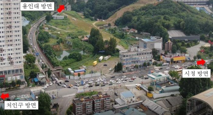 용인대 입구 삼거리에서 용인시청 방향 좌회전 차로의 정체 문제는 신호체계 개선으로 해결했다.