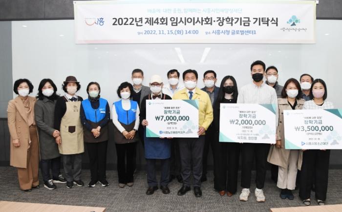• (재)시흥시인재양성재단이 지난 15일 시흥시청 글로벌센터1에서 장학기금 기탁식과 2022년 제4회 임시이사회를 진행했다.