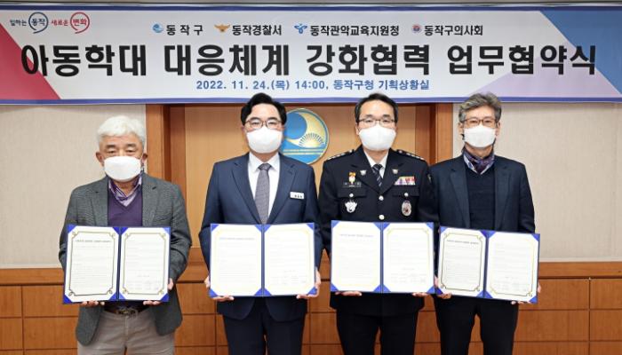 박일하 동작구청장은 “이번 협약을 통해 관계기관이 선제적으로 공동 대응함으로써, 아동학대 사건의 사각지대를 없애는 데 최선을 다하겠다”고 말했다.