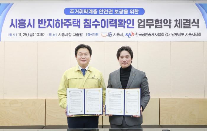 이 날 협약에 따라 ‘한국공인중개사협회 시흥지회’는 중개가 의뢰된 반지하주택에 한해 시에 침수이력확인을 요청하고, 시흥시는 의뢰된 주택의 침수 이력정보를 제공한다.