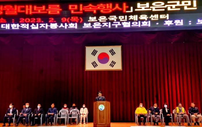 이날 행사에는 최재형 보은군수, 이경노 군의회부의장, 기관단체장 및 주민 등 500명이 참석한 가운데 대한적십자사봉사회 보은지구협의회 주관으로 개최했으며, 보은군 풍물연합회의 지신밟기를 시작으로 윷놀이대회를 진행해 군민화합 시간을 가졌다.