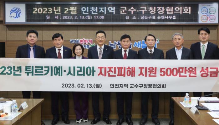 이번 성금 기탁은 지난 13일 남동구청에서 열린 인천지역 군수구청장협의회 정례회의에서 우방국인 튀르키예 등의 피해를 조기에 복구하고 전 세계적 구호활동에 동참하기 위해 뜻을 모아 결정했다.