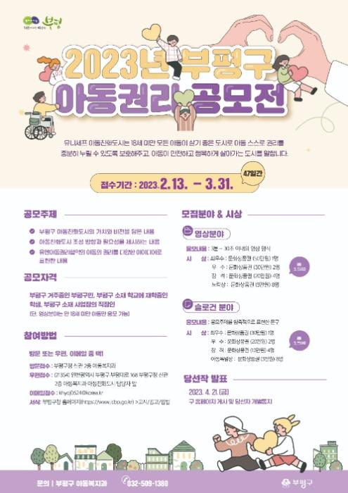 • [스포츠와 엔터테인먼트의 만남 '스포테이너즈(SPORTAINERS)', 박재상기자] 인천시 부평구가 오는 3월 31일까지 2023년 부평구 아동권리 공모전을 실시한다.