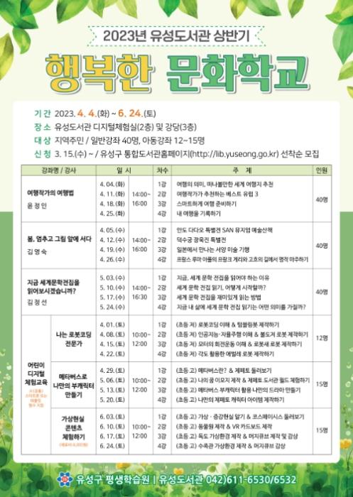 • 대전시 유성구, 유성도서관 2023년 상반기 행복한 문화학교 운영