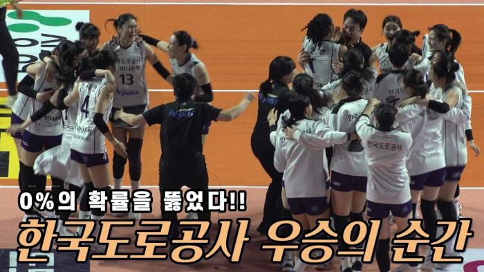 • [인천=스포테이너즈, 고초록] '0%의 확률을 뚫었다!' 한국도로공사, V리그 사상 최초의 리버스 스윕 우승 달성! 통