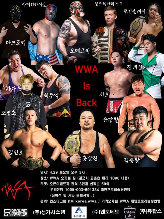 • 대한프로레슬링연맹, 4월 29일 'WWA Is Back' 대진 발표