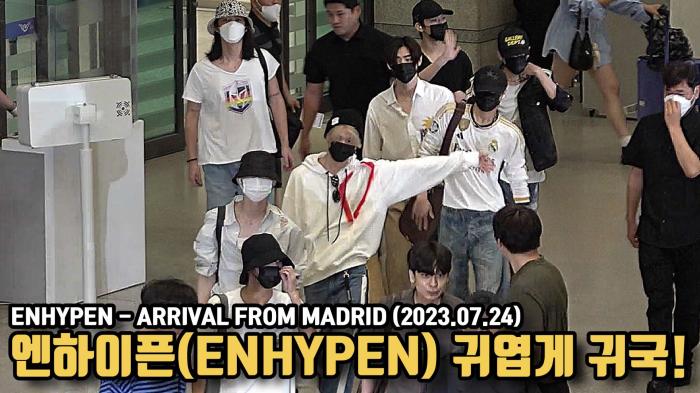 • [인천국제공항=스포테이너즈] 그룹 엔하이픈(ENHYPEN)이 스페인 마드리드에서 열린 'SBS 슈퍼라이브' 일정을 마치고 24일 오후 인천국제공항 1터미널을 통해 입국했다.
