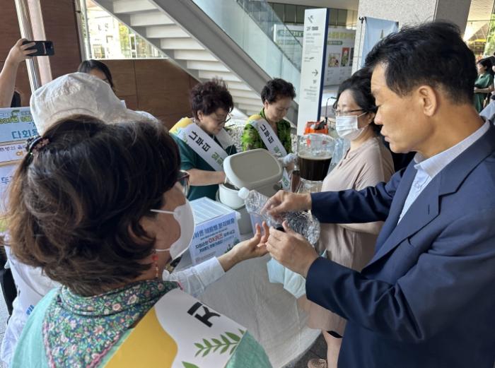 이날 텀블러를 가지고 구청을 방문한 300여 명의 주민에게 실버복지센터의 실버그린리더 4명이 음료와 차를 제공하며 다가오는 11월에 계도기간이 종료되는 ‘일회용품 사용규제’에 대하여 홍보하며 자원순환의 중요성을 알렸다.