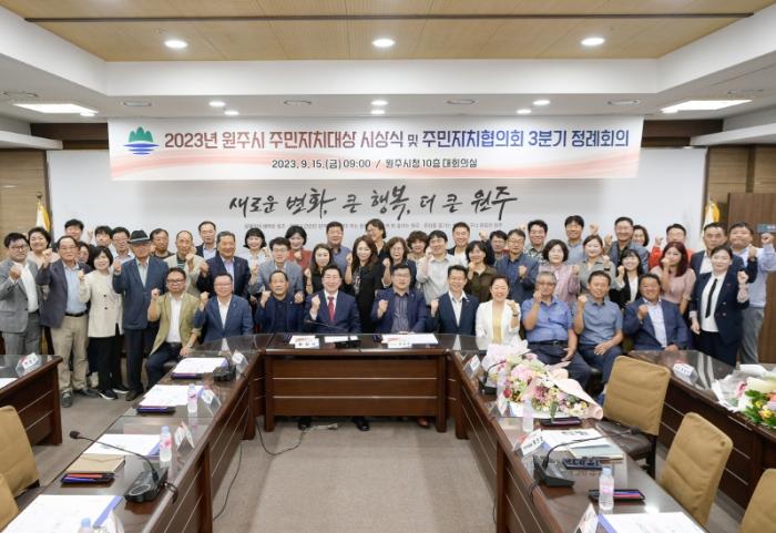 • 원주시는 지난 15일 시청 10층 대회의실에서 ‘2023년 원주시 주민자치대상’ 시상식을 개최했다.
