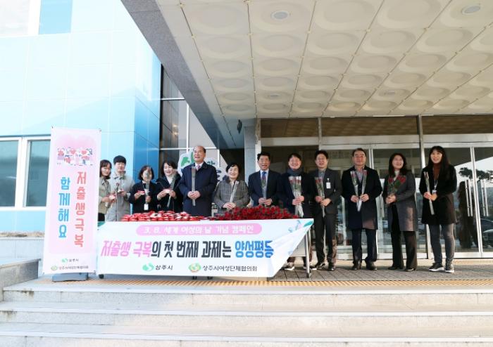 이날 캠페인은 세계 여성의 날을 기념하는 것과 더불어 조직 구성원의 양성평등 실천 인식을 전환하는 시간을 가지고, 이를 통해 저출생 문제를 극복하기 위한 초석을 다지는 계기로 삼아 육아하기 좋은 직장 분위기를 조성하고자 마련됐으며 상주시여성단체협의회에서 장미꽃과 빵을 후원했다.