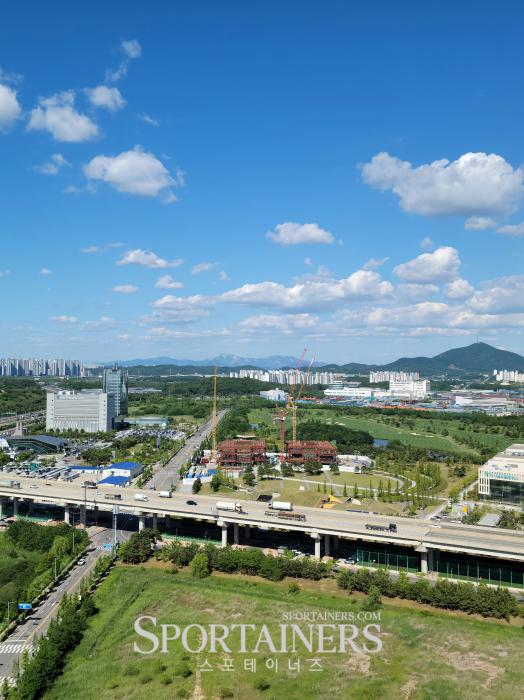 | 청라국제도시의 랜드마크가 될 하나금융헤드쿼터는 열심히 공사중 (사진=고초록 기자) |